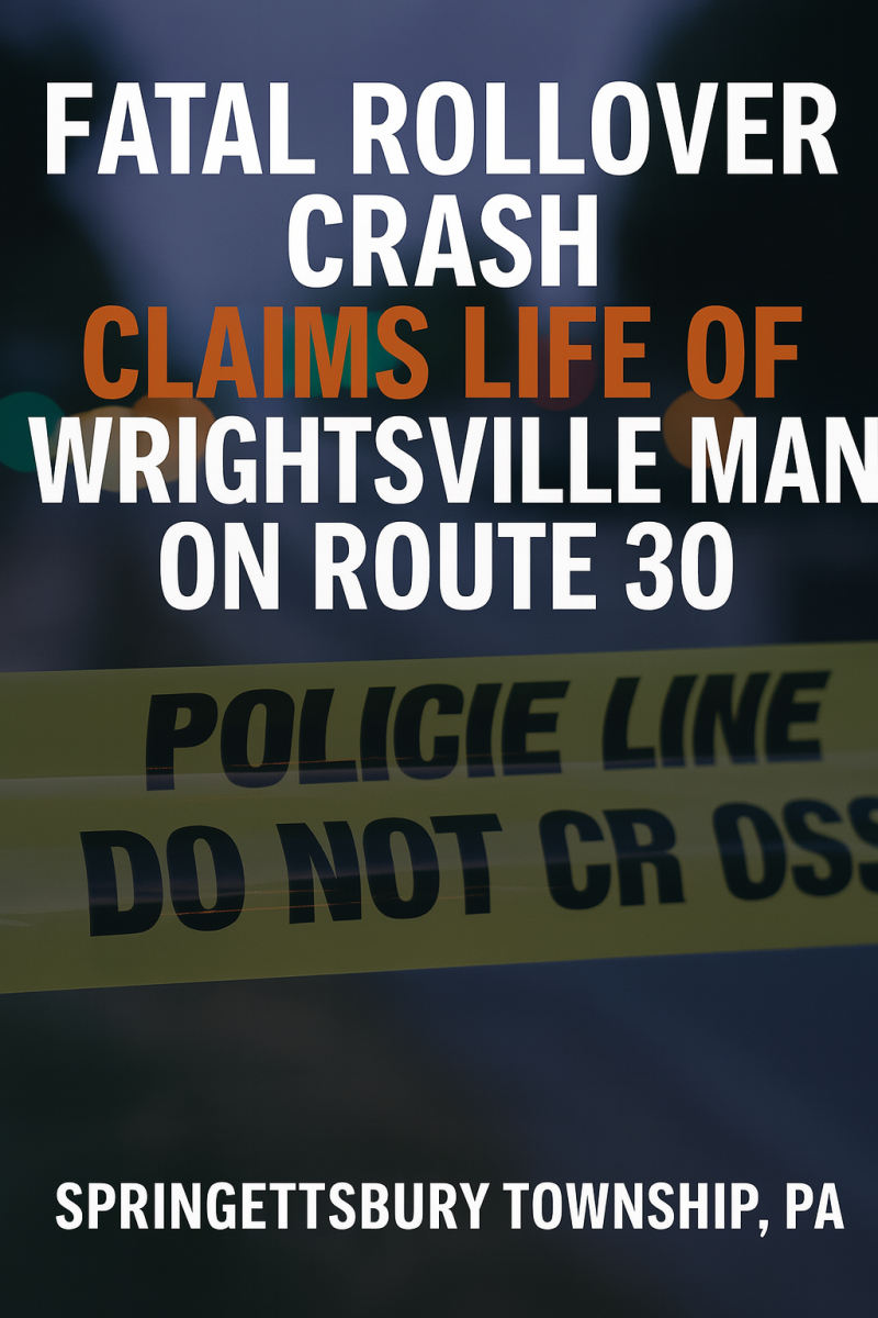 SPRINGETTSBURY TOWNSHIP, PA — A quiet Monday morning turned tragic when a single-vehicle rollover crash on Route 30 claimed the life of Timothy Frisby Jr., 61, of Wrightsville. The incident occurred near Mount Zion Road and has left the community mourning and officials urging renewed attention to roadway safety.